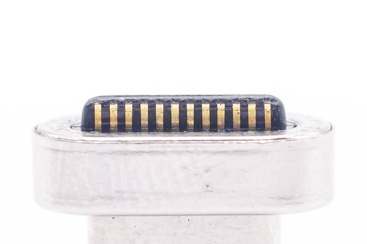 USB-C erkak uchining ichki tafsilotlari to'liq pinlar uchun mo'ljallangan.