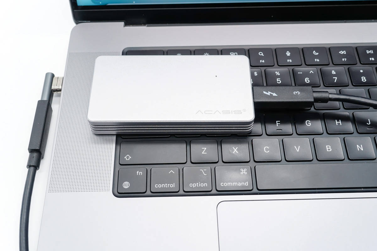 O'tkazish tezligini tekshirish uchun MacBook Pro-da Disk tezligi testidan foydalanib, o'lchangan yozish tezligi 1457,6 MB/s, o'qish tezligi esa 2855,4 MB/s. (Bu yerda Samsung X5 qattiq diskining haqiqiy yozish tezligi 1700MB/s, oʻqish tezligi esa 2400MB/s.)