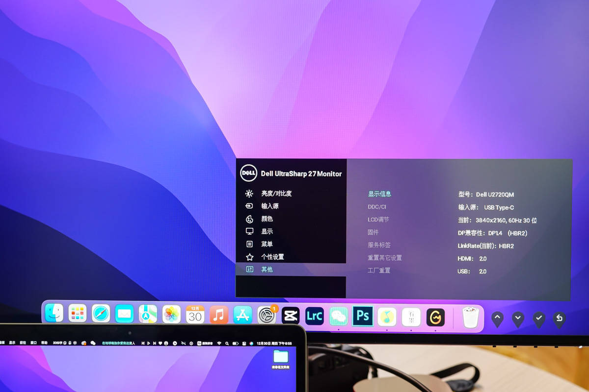 Keyinchalik, video uzatishni ko'rib chiqaylik, Thunderbolt 3 ma'lumot kabelini adapter orqali Dell U2720QM 4K monitoriga ulang.