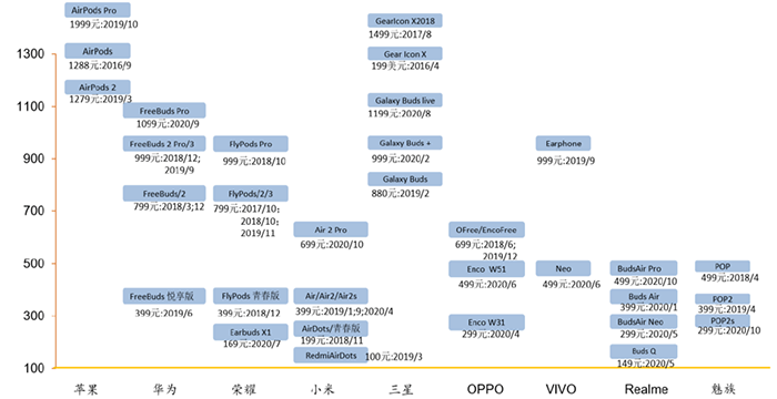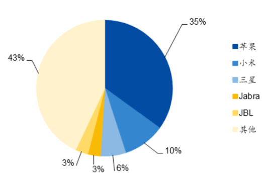 Brendni tarqatish nuqtai nazaridan, TWS minigarnituralar bozori birinchi marta Apple tomonidan portlatilgan. Bir necha yillik rivojlanishdan so'ng, uning AirPods mahsuloti o'rta va yuqori darajadagi bozorda juda yuqori bozor ulushiga ega. Counterpoint tahliliy maʼlumotlariga koʻra, 2020-yilning ikkinchi choragi holatiga koʻra, TWS bozoridagi yetakchi uchta kompaniya Apple (35 foiz), Xiaomi (10 foiz) va Samsung (6 foiz) hisoblanadi. bozor.